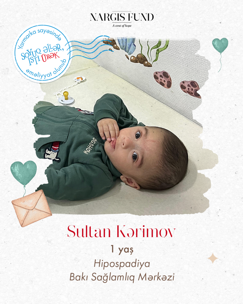 Körpə Sultan hipospadiya diaqnozu ilə müalicəyə ehtiyac duyurdu. Onun əməliyyatı üçün tələb olunan 4.500 AZN məbləğində vəsait xeyirxah insanların, tərəfdaşlarımızın və dəstəkçilərimizin birgə səyi nəticəsində toplanaraq lazımi tibbi müdaxilənin həyata keçirilməsinə imkan yaratmışdır.